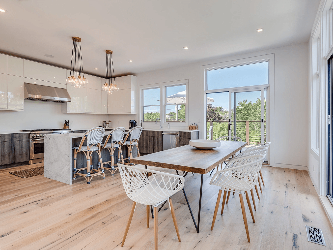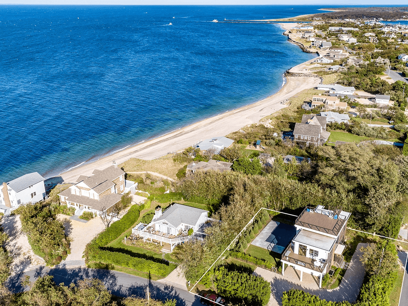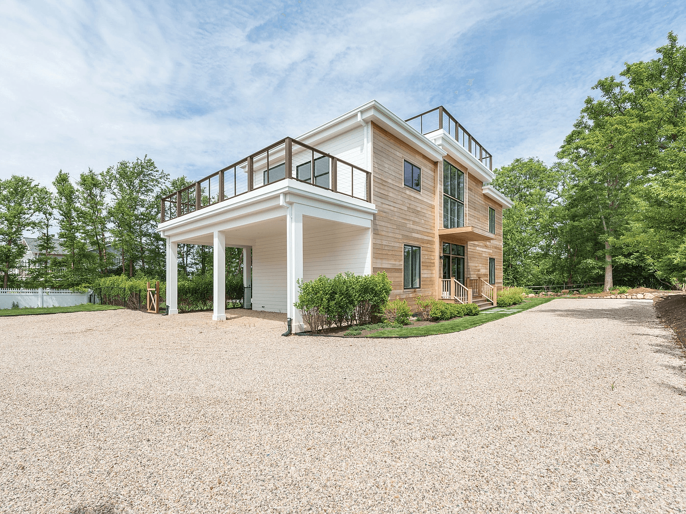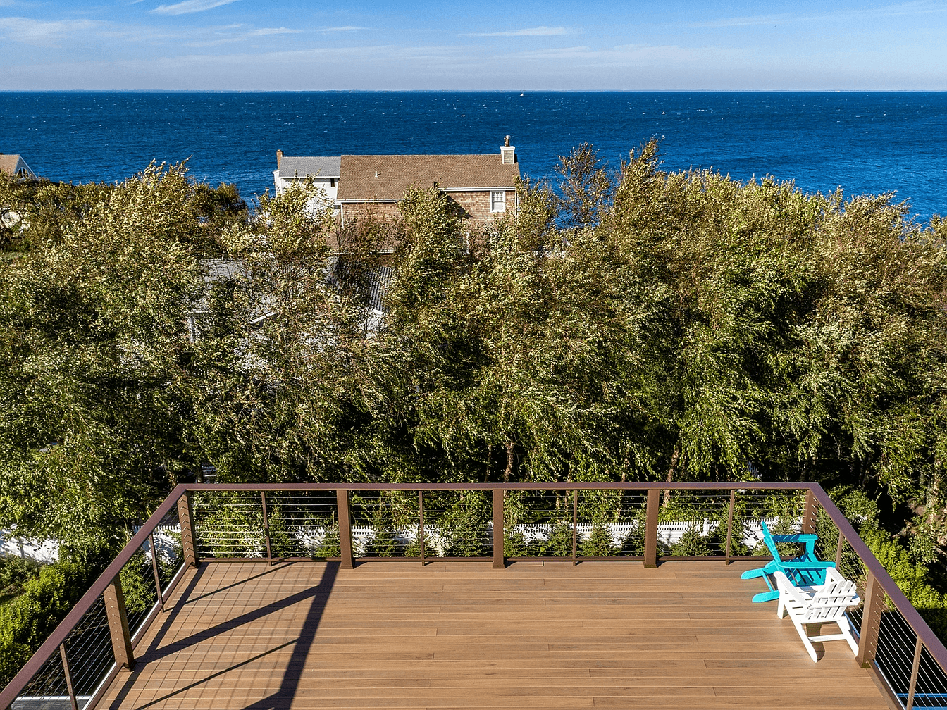 This brand new modern home comes complete with water views of the harbor, Gardiners Island, Connecticut & Block Island Sound. Dramatic floor to ceiling windows line the rear of the home, filling the interiors with natural light. The second floor includes an open living area, a state-of-the-art-kitchen & dining area – all with access to wraparound decking and the rooftop deck which showcases breathtaking water views. The master suite comes complete with a private terrace, a deep soaking tub and a floor to ceiling frameless glass enclosed shower. Three additional bedrooms are located on the first floor with access to the patio and the heated Gunite pool. Just minutes away from restaurants, shops & marinas.